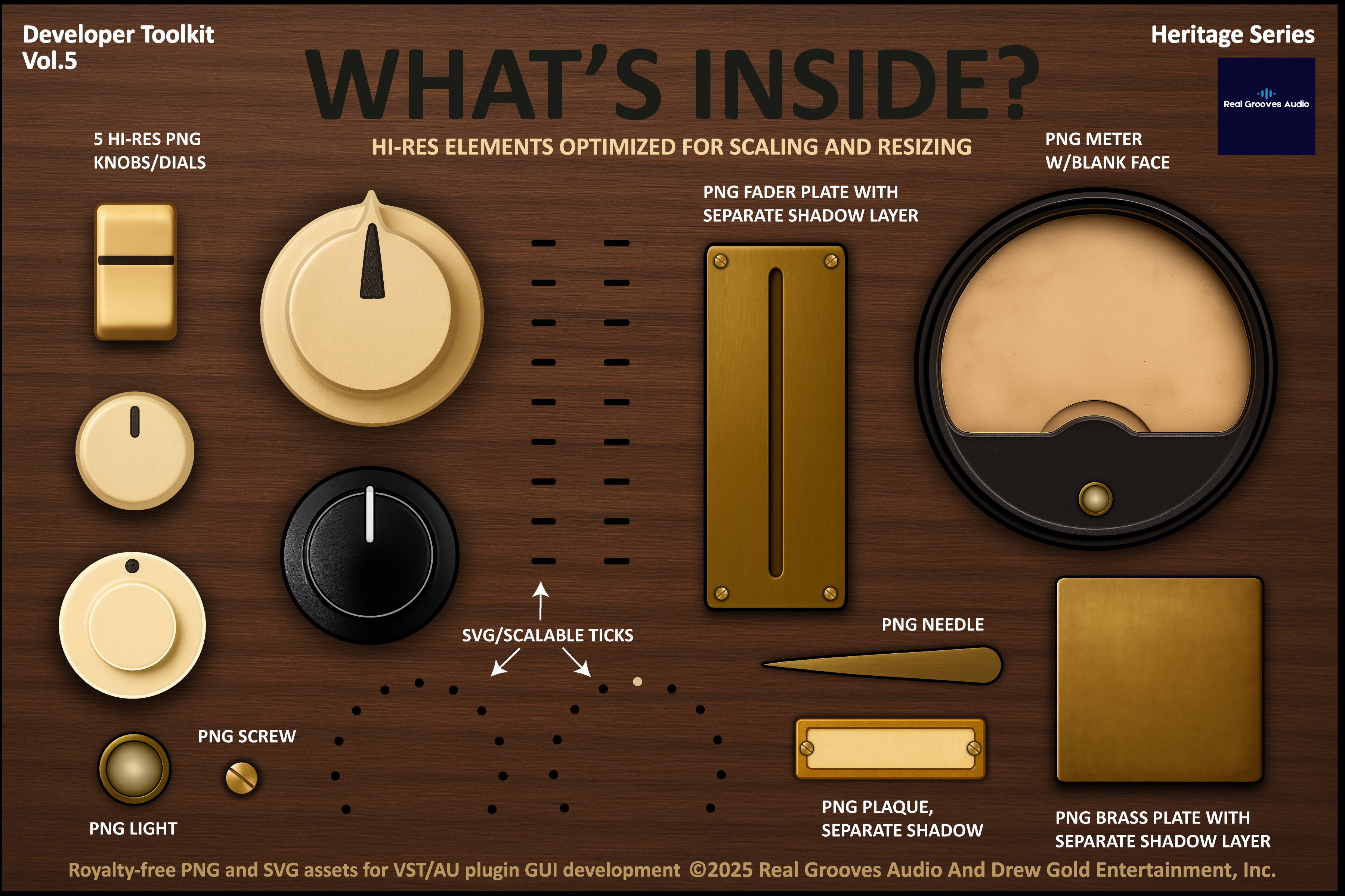 The Heritage Series is our latest build for plugin developers. Whether you're working in JUCE, iPlug2, HISE, or any modern framework, these assets are structured for real-world implementation.