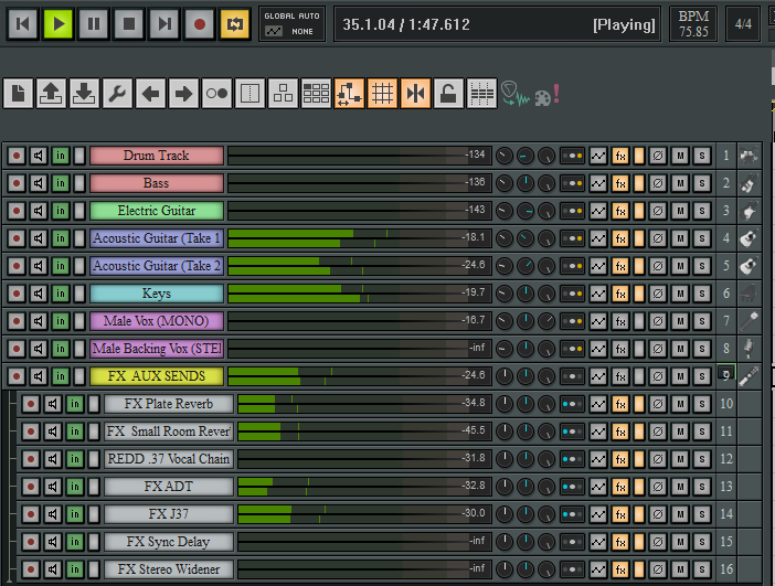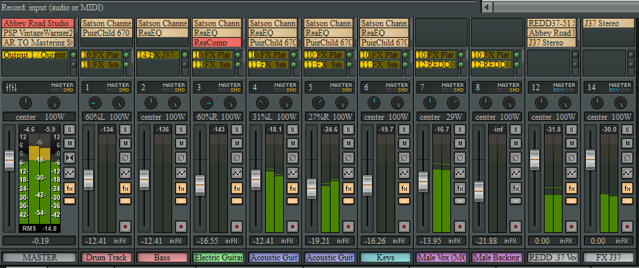 REAPER: Routing, channel structure, light EQ as needed